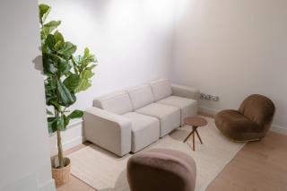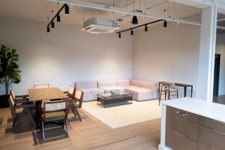 Studio 02 with its vestibule entrance, includes a 9.5m wide cove, alongside a high specification hair, makeup & styling area as well as separate kitchen, dining area, lounge and bathrooms.