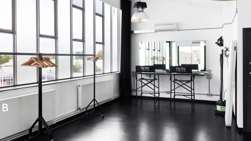 Providing flexible working areas suited to castings, meetings, private breakout, green room spaces or small scale shoots. Space A is the largest, with a small lounge area, as well as concrete and brick effect walls. Space B is ideal as a hair, makeup or dressing room.